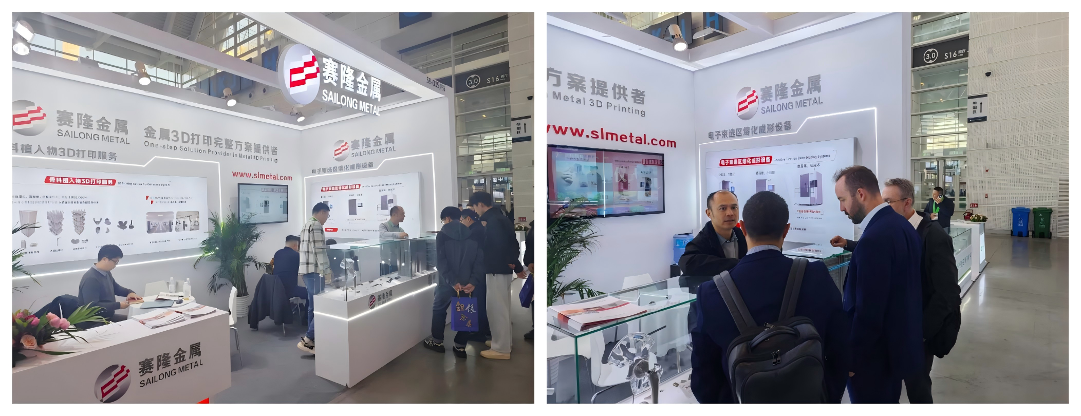 展會(huì)期間,西安賽隆集中展示了電子束3D打印技術(shù)在骨科領(lǐng)域的核心優(yōu)勢(shì)及典型應(yīng)用案例,涵蓋關(guān)節(jié)、脊柱等多個(gè)細(xì)分領(lǐng)域。在標(biāo)準(zhǔn)化鈦合金植入物批量生產(chǎn)方面,西安賽隆重點(diǎn)展示了滿板打印髖臼杯、滿板打印融合器、滿板打印股骨柄及滿板打印脛骨平臺(tái),全面介紹了公司電子束3D打印骨科植入物的低成本、高效率的獨(dú)特優(yōu)勢(shì)。在產(chǎn)品研發(fā)與新材料應(yīng)用方面,西安賽隆展示了多項(xiàng)電子束3D打印創(chuàng)新研發(fā)成果,包括個(gè)性化鈦合金、多孔鉭墊塊以及鋯鈮合金踝骨、橈骨、膝關(guān)節(jié)等新型假體案例。公司參展團(tuán)隊(duì)與來(lái)自國(guó)內(nèi)外多家知名醫(yī)療機(jī)構(gòu)的臨床醫(yī)師、科研人員等圍繞骨科植入物的創(chuàng)新設(shè)計(jì)、注冊(cè)認(rèn)證、臨床轉(zhuǎn)化及應(yīng)用前景等方面進(jìn)行了深入交流,共話精準(zhǔn)醫(yī)療、數(shù)字醫(yī)療新發(fā)展。